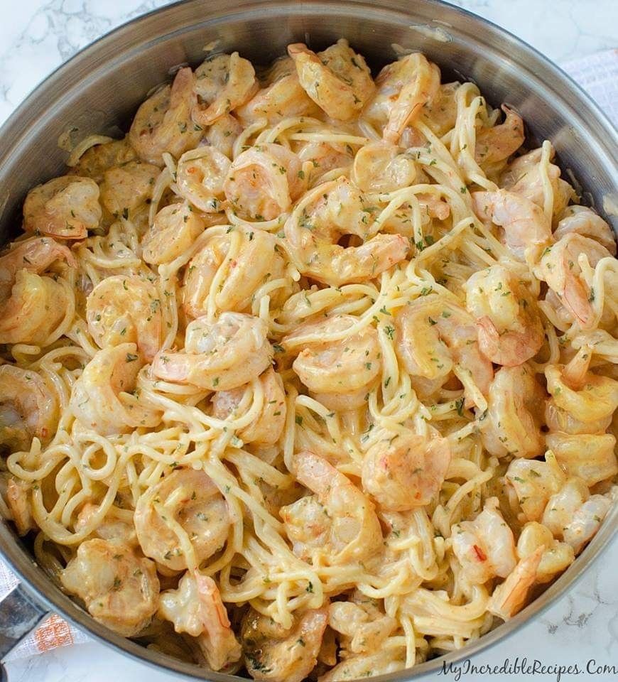 In a large bowl, combine the pasta, shrimp/chicken and sauce mixture and toss WELL.