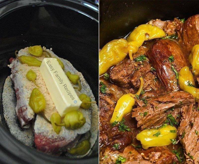 Mississippi Roast is usually made by placing a chuck roast in a crock pot or slow cooker. You’ll cook it beneath some butter, a package of ranch dressing mix, another package of “au jus” gravy mix and a handful of pepperoncini peppers.