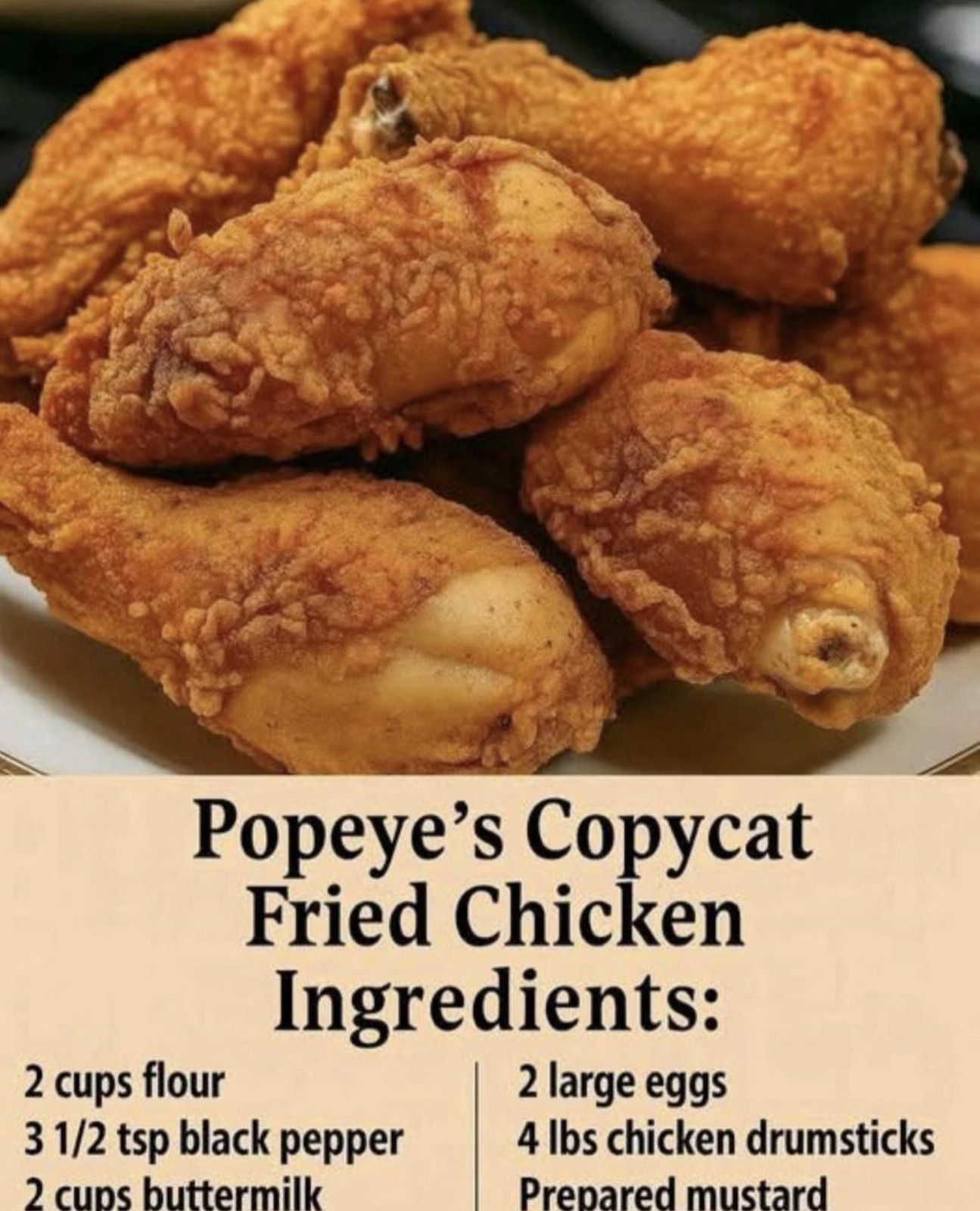 This copycat of Popeye’s fried chicken gives you the same satisfying contrast of juicy interior and super-crispy, deeply seasoned crust — made at home. The two keys are a flavorful buttermilk soak (with eggs and a touch of mustard if you like) that tenderizes and seasons the meat, and a double-dredge that uses cornstarch mixed with flour for extra crunch. The blend of paprika, black pepper, garlic and onion powders, and a hint of turmeric for color creates a warm, savory crust that browns beautifully in hot oil. This version from tinsuf is approachable, reliable, and packed with tips so you can achieve professional results in your kitchen.