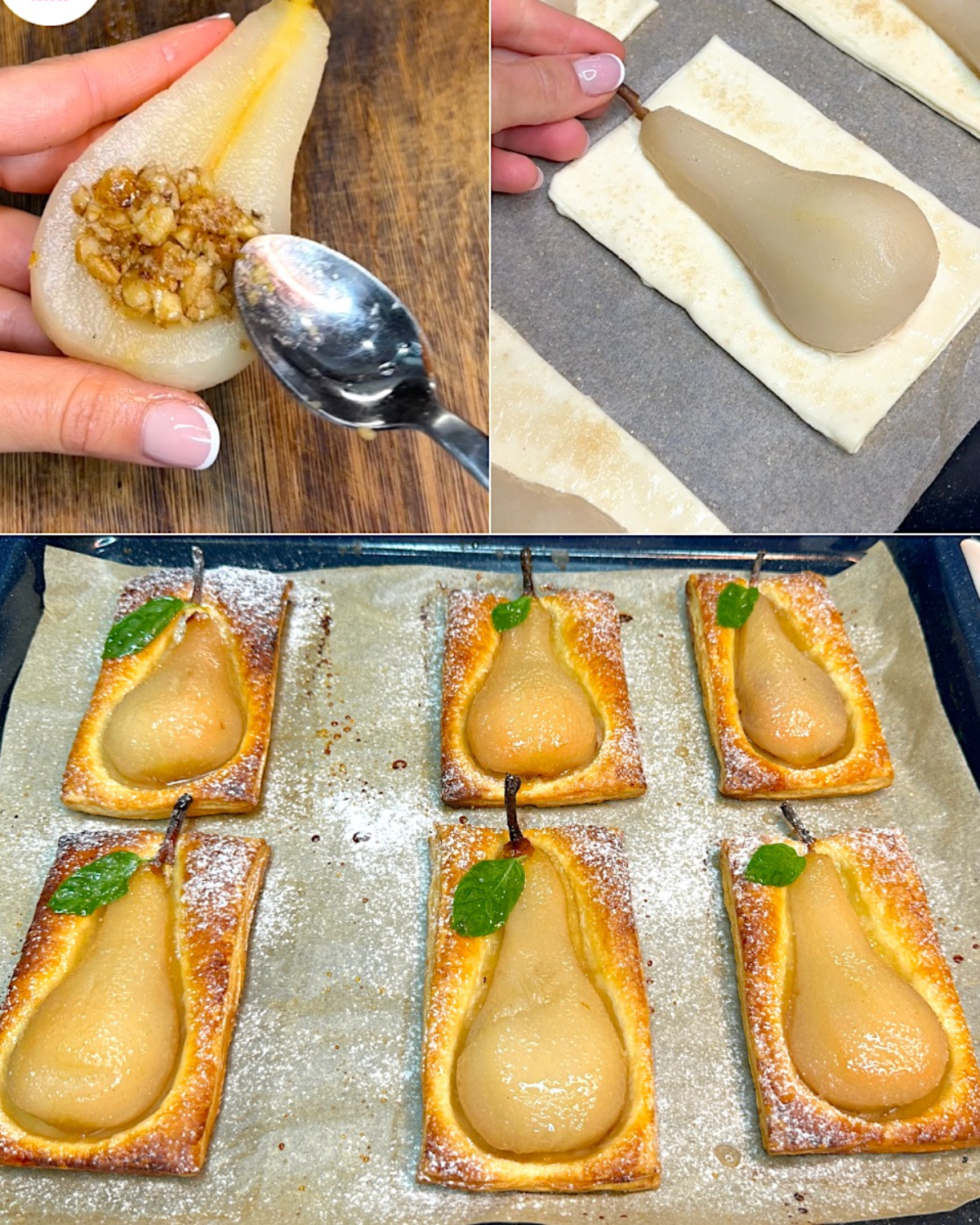Anyone who loves apple tarts in the fall will enjoy these puff pastry pear tarts as well. The combination of soft and sweet pears with the crunchy walnut filling will keep people coming back for more.